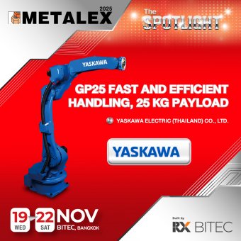 GP25 แขนหุ่นยนต์ดีไซน์เพรียว ประหยัดพื้นที่ติดตั้ง รับน้ำหนักได้ 25 กก. ทำซ้ำแม่นยำ ±0.02 มม. ความเร็วแกนสูงสุด 885°/วินาที รองรับงานประกอบ จัดการวัสดุ ตัด เจียร และหยิบวาง พร้อมติดตั้งง่าย บำรุงรักษาต่ำ
